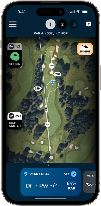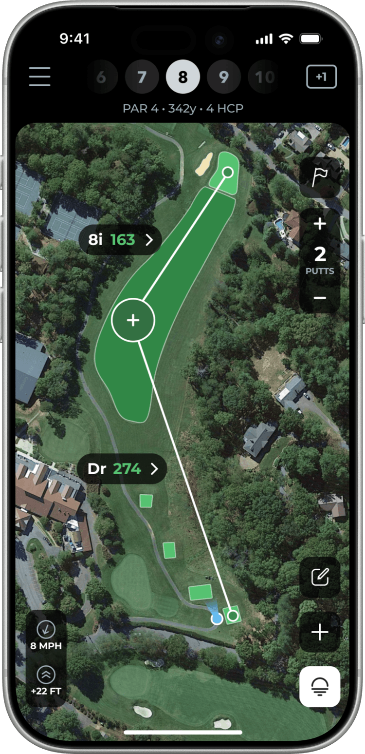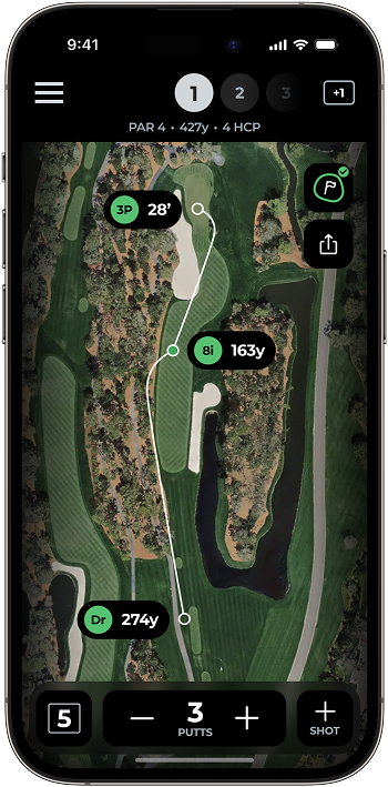 The map is the primary interface. Everything else is secondary to the satellite view of the hole you're playing.