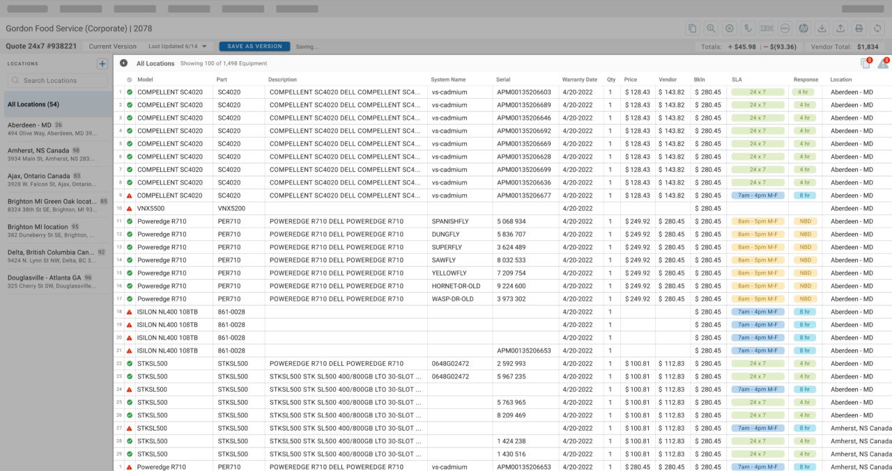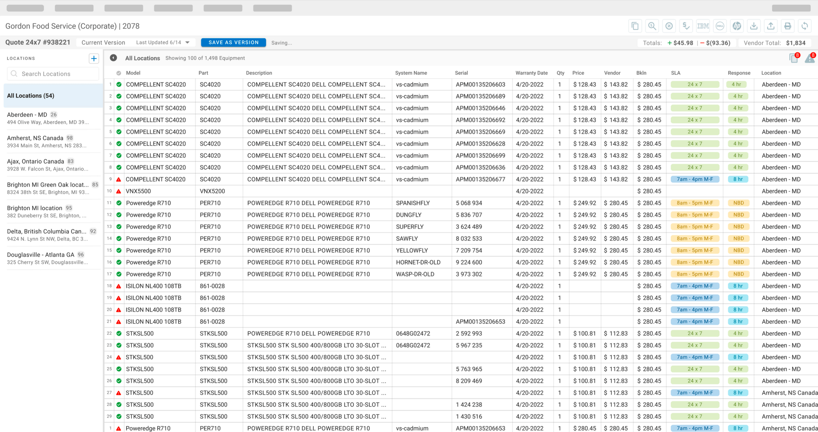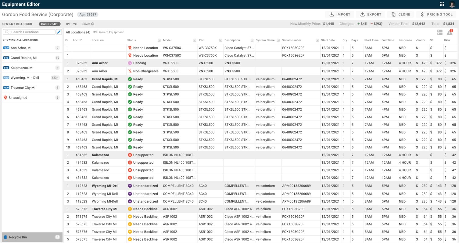 One location at a time was a bottleneck. The old editor only let you work with one equipment location at a time. For multi-site quotes, that meant repeating the same steps over and over. This was probably the biggest frustration I heard from users.