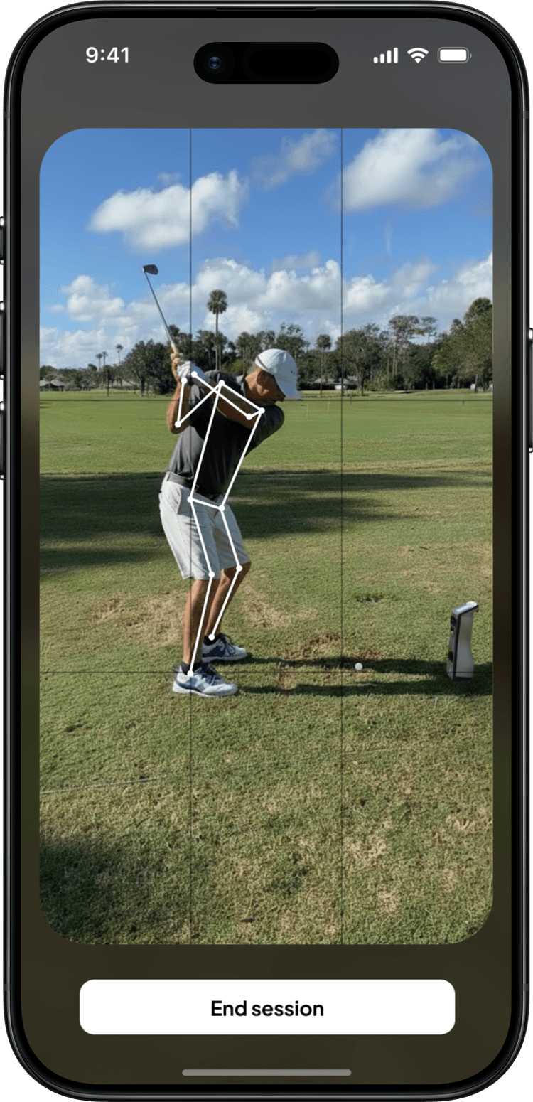 This was a 1-month contract engagement to design that connection. A golfer walks up to the range, picks a club, and hits five swings. Foresight captures the ball data. Greenside's AI tracks their body through each swing using pose estimation. The system correlates both, finds the pattern, and gives them one thing to work on.