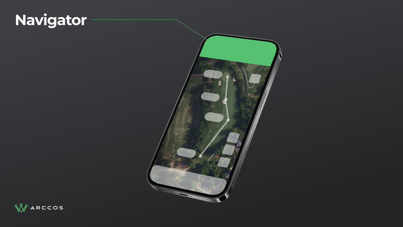 Same information as before: hole number, par, yardage, handicap. Completely new presentation. The navigator uses a carousel pattern so golfers can swipe between holes without leaving the map view.