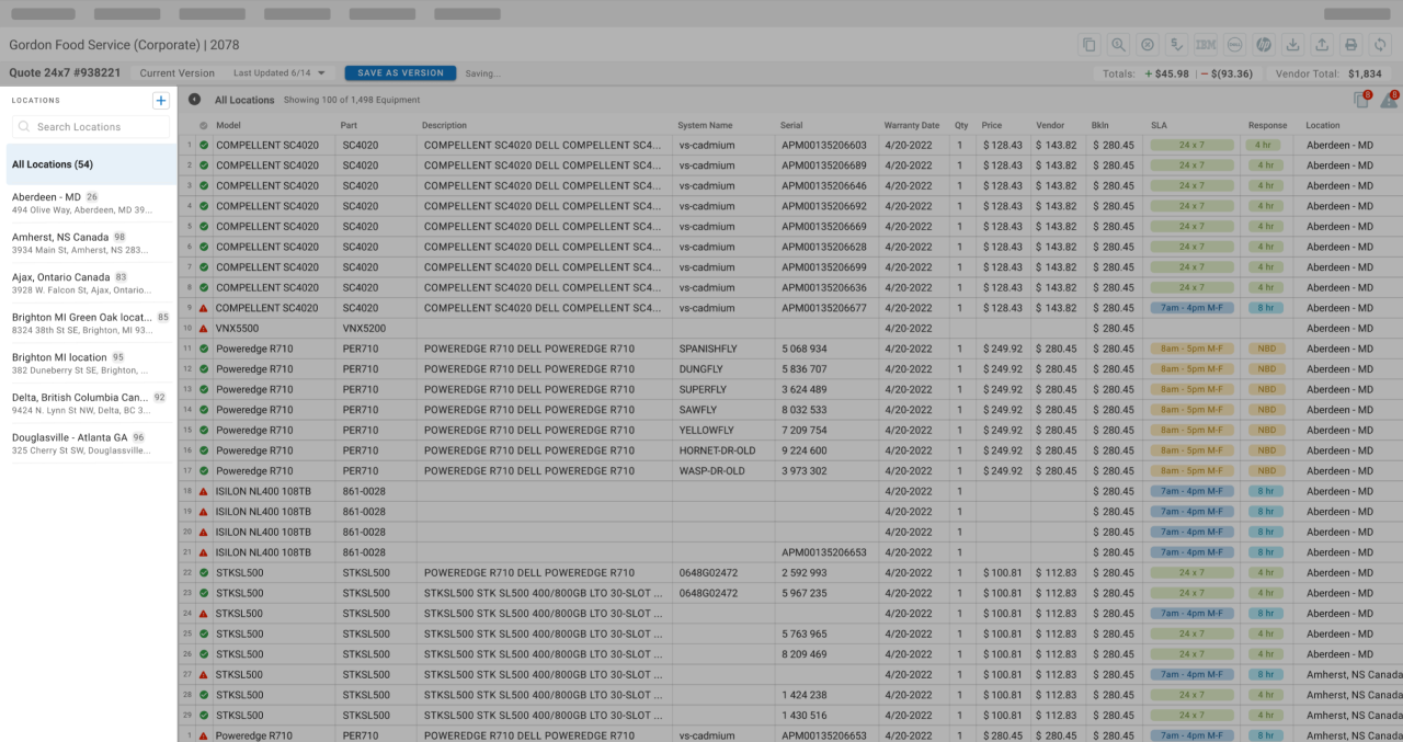 One location at a time was a bottleneck. The old editor only let you work with one equipment location at a time. For multi-site quotes, that meant repeating the same steps over and over. This was probably the biggest frustration I heard from users.