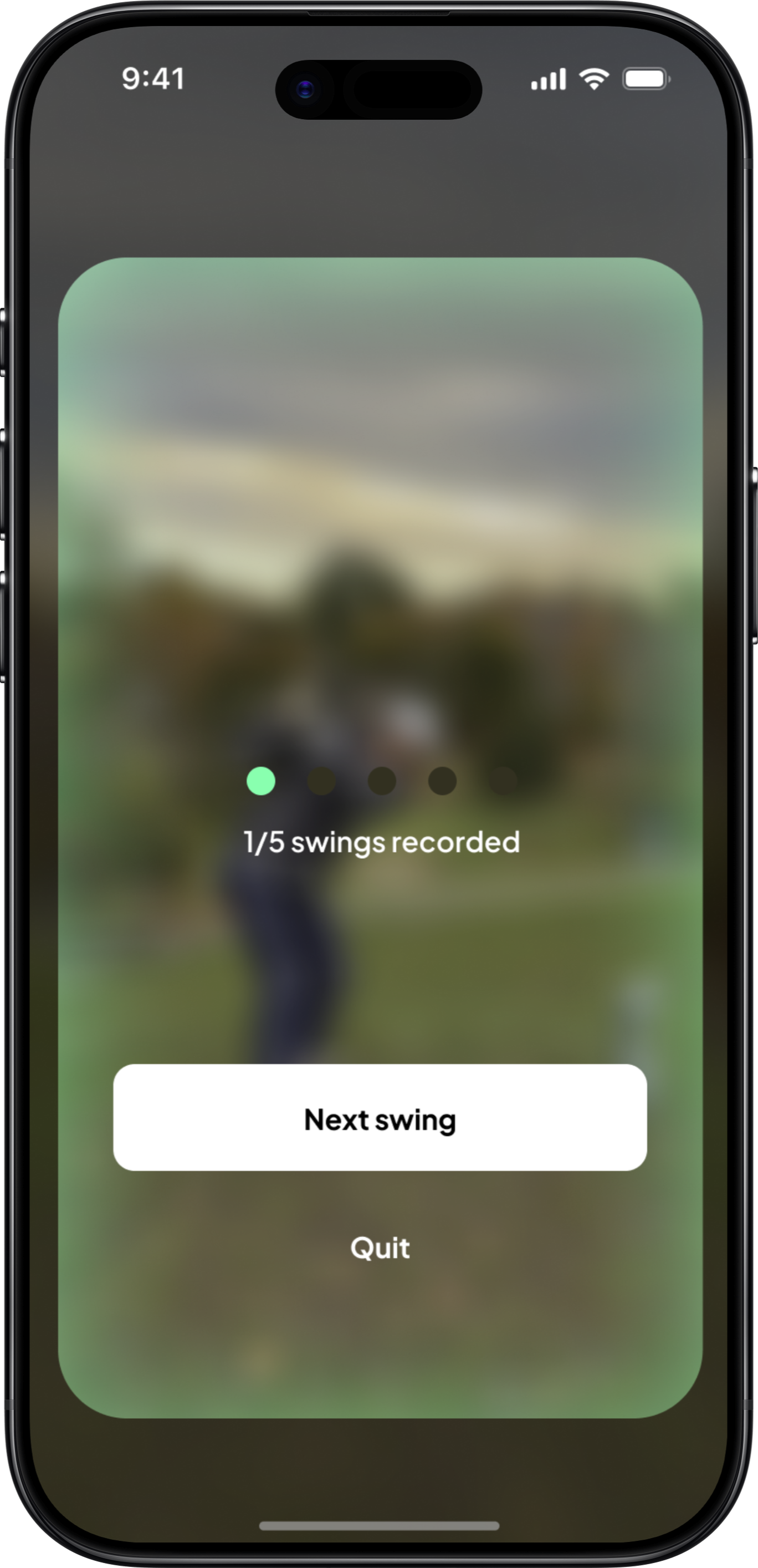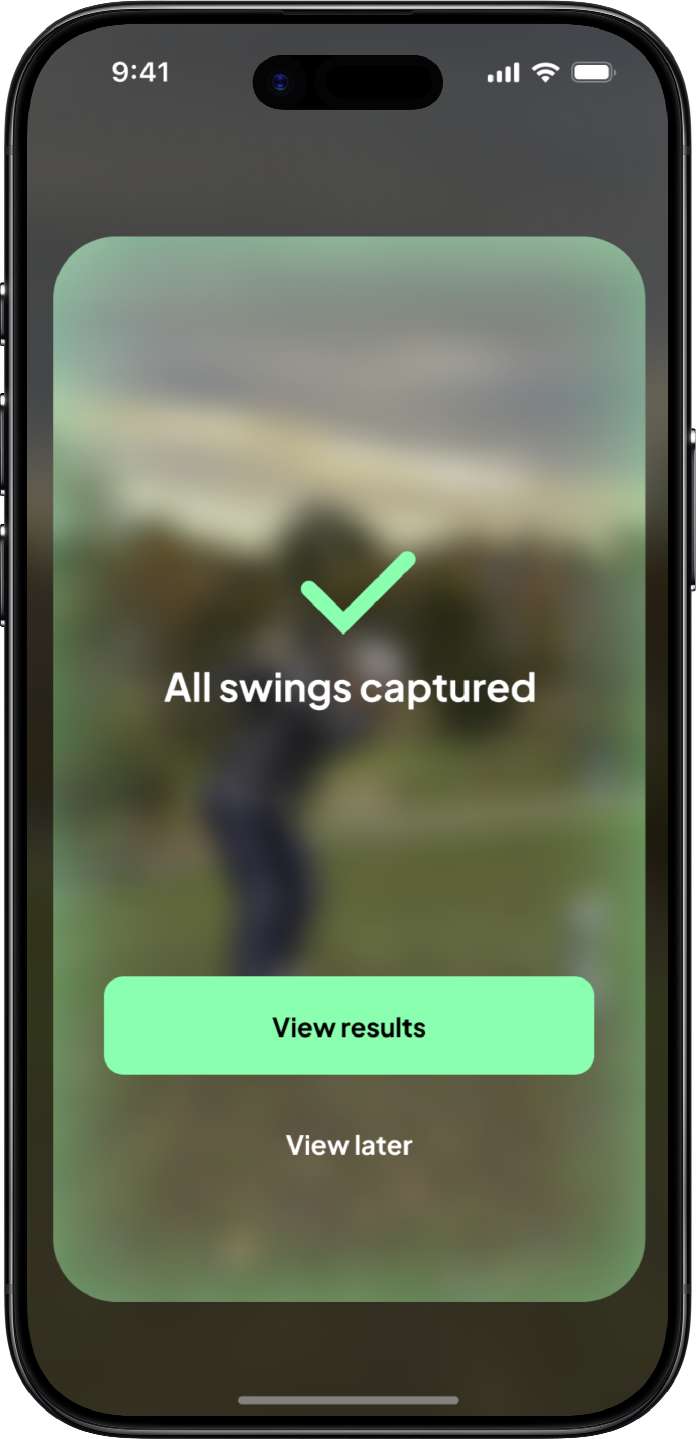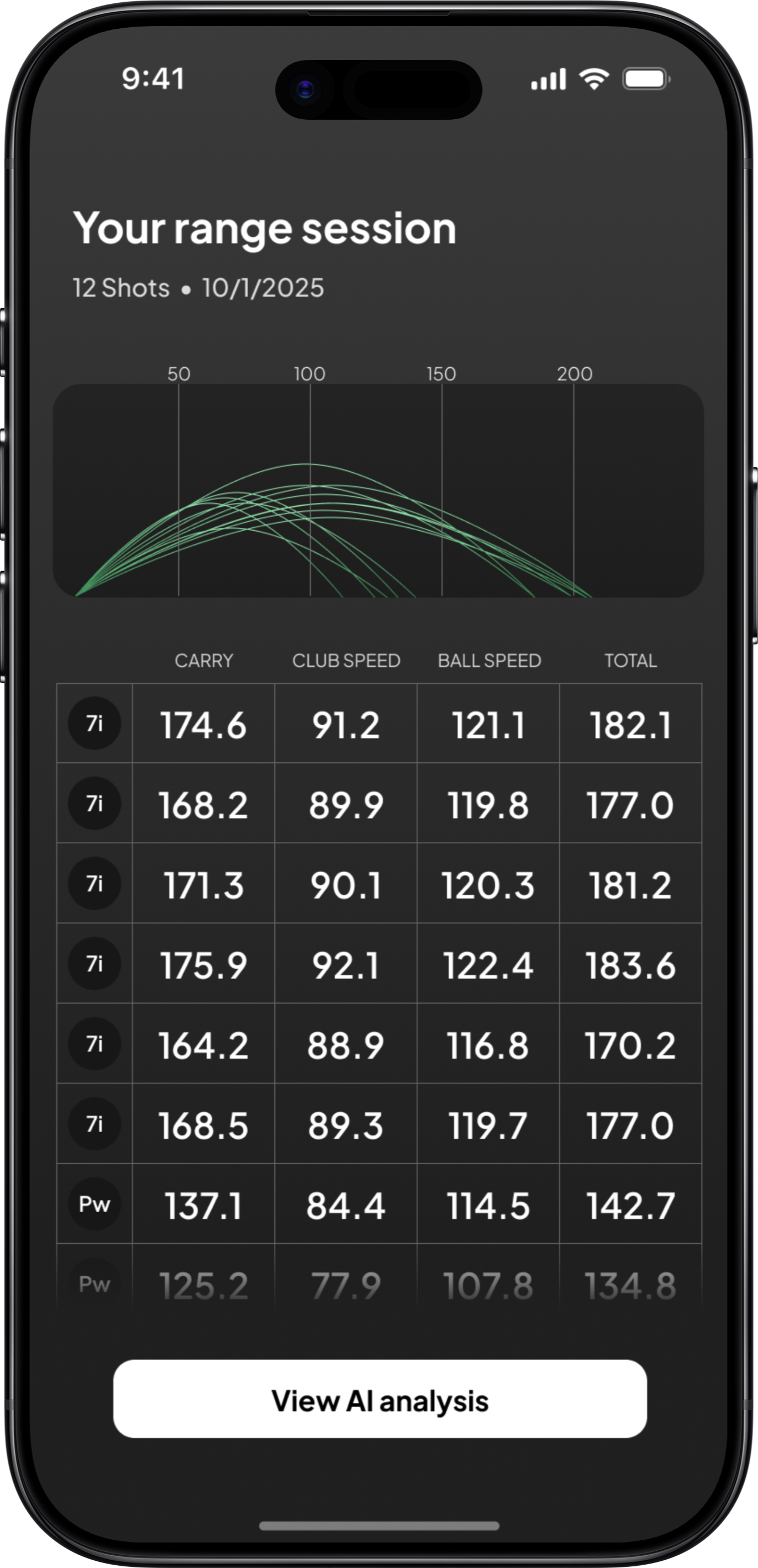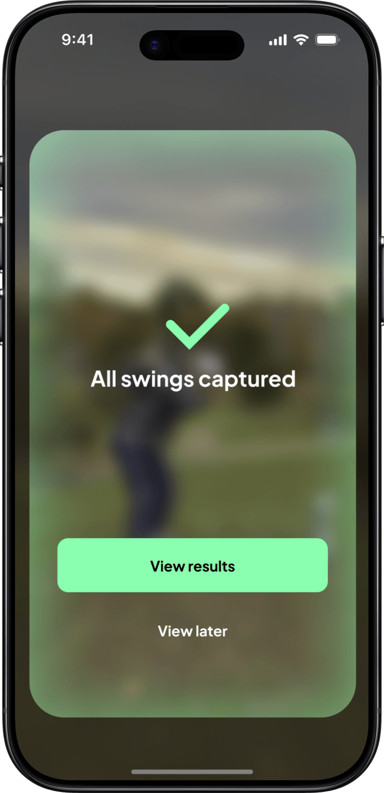 The progress flow tracks each swing as it's captured, then surfaces the full session results in a table so the golfer can see their numbers. But the table isn't the destination. It's context for what comes next.