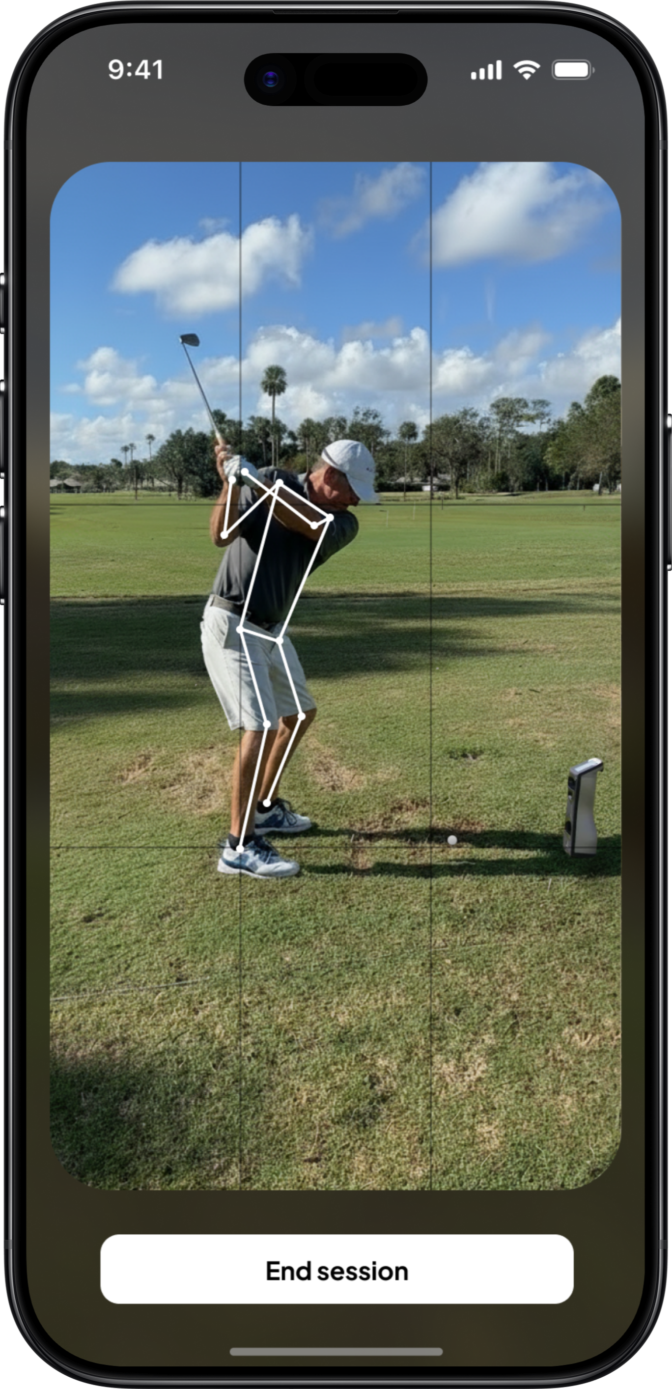 This was a 1-month contract engagement to design that connection. A golfer walks up to the range, picks a club, and hits five swings. Foresight captures the ball data. Greenside's AI tracks their body through each swing using pose estimation. The system correlates both, finds the pattern, and gives them one thing to work on.